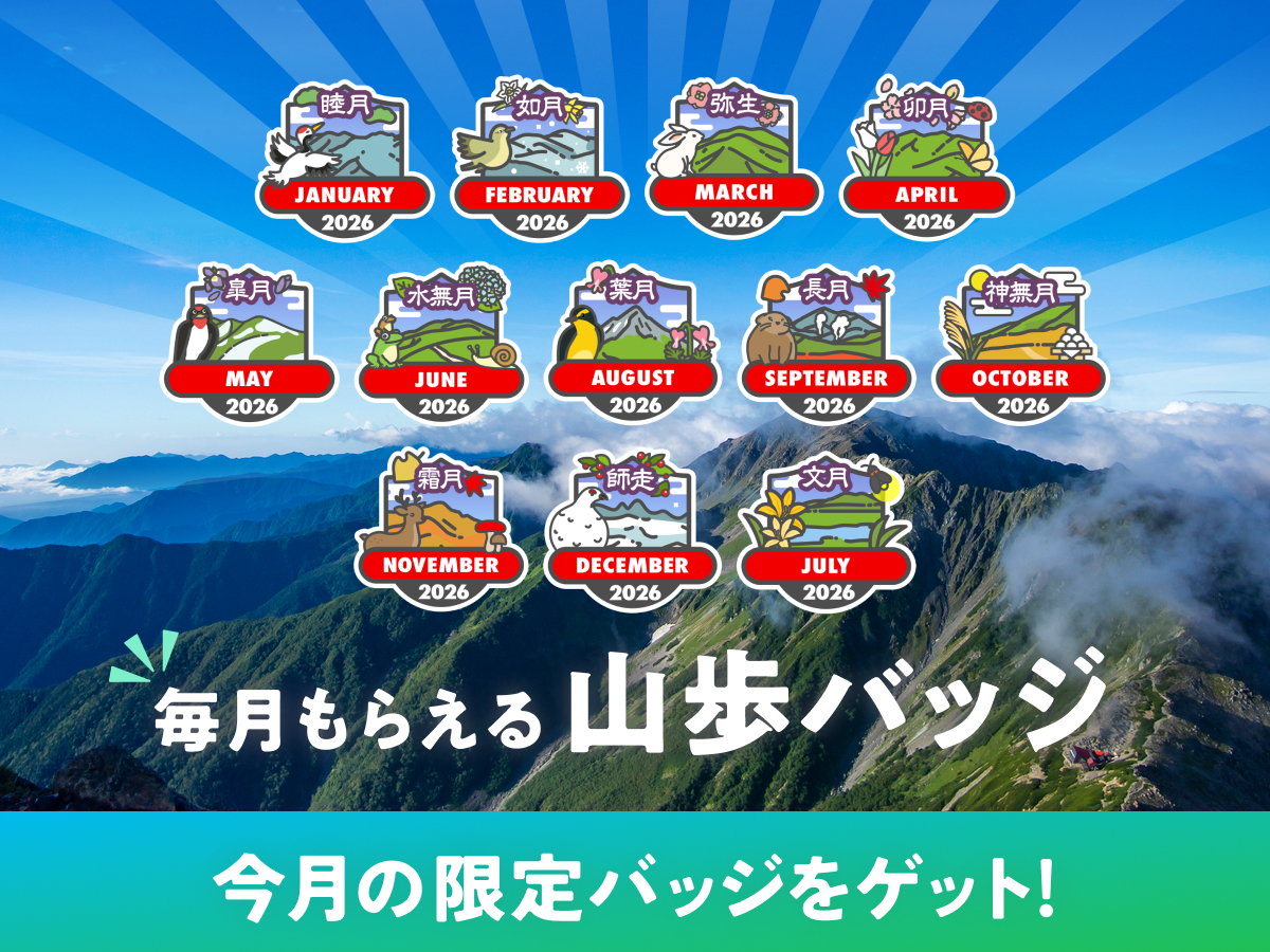 【2026年も開催】毎月もらえる山歩バッジ|連続達成でコンプリートバッジまでゲットしよう
